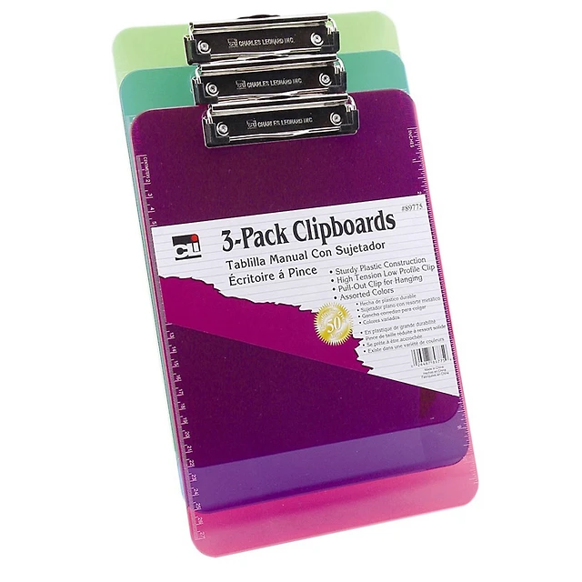 Charles Leonard Plastic Clipboards, 3ct.