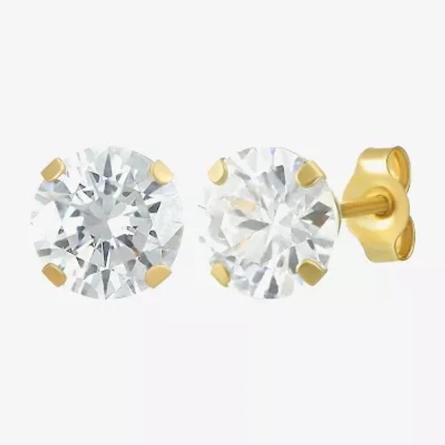 Womens Cubic Zirconia 14K Gold Ball Round 3 Pair Earring Set