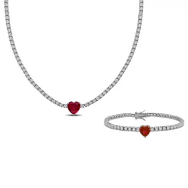 Lab Created 2-Piece Set of Created Ruby & Created White Sapphire Bracelet & Necklace in Sterling Silver - 7.25 in + 17 in