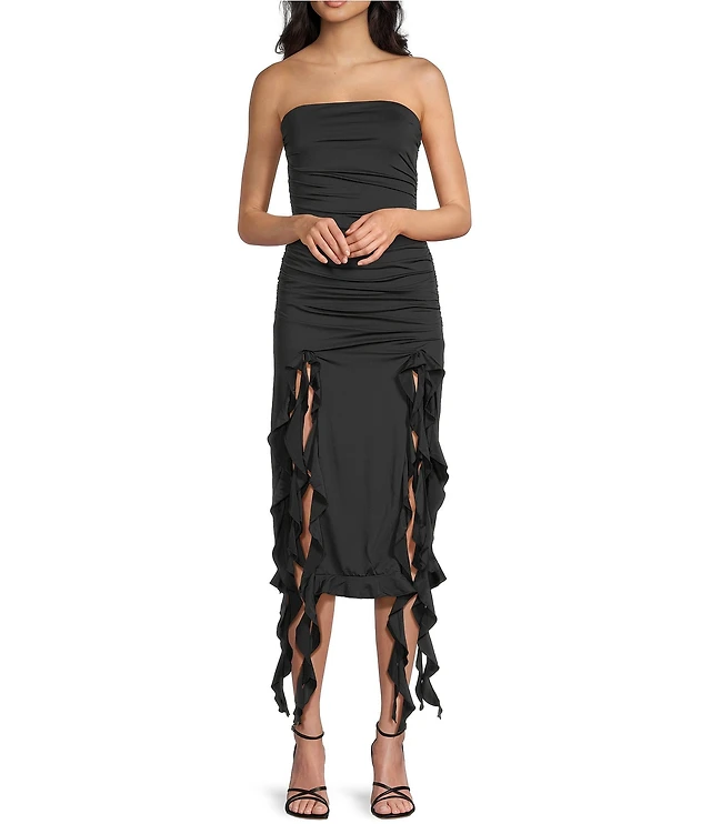 Laney Ruffled Slit Glitter Knit Mermaid Dress