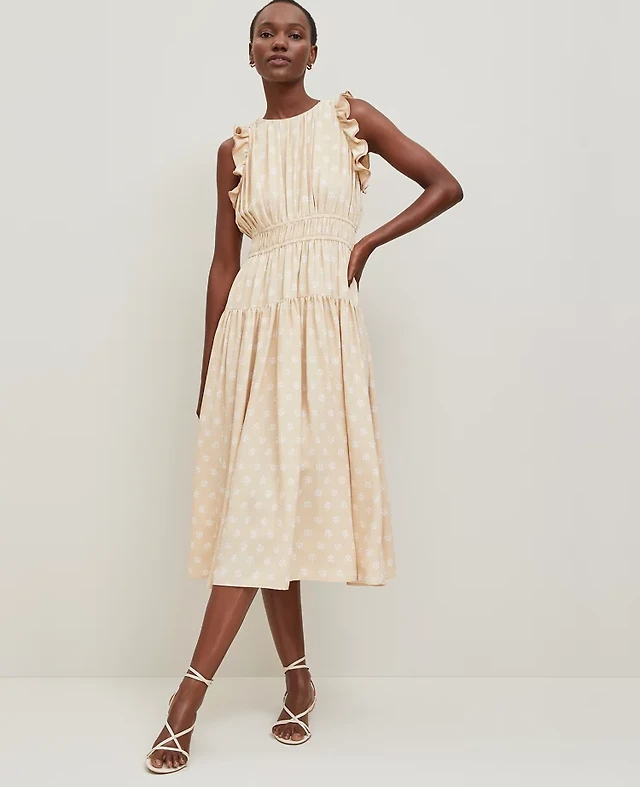 Ann Taylor Petite Petaled Ruffle Midi Dress Sands Edge Women's