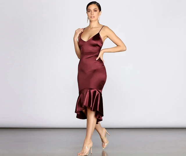 Trumpet Hem Satin Midi Dress