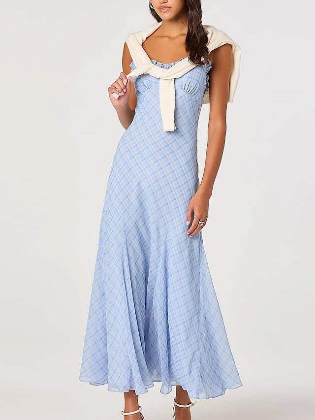 Plaid V-Neck Smocked Fit & Flare Dress