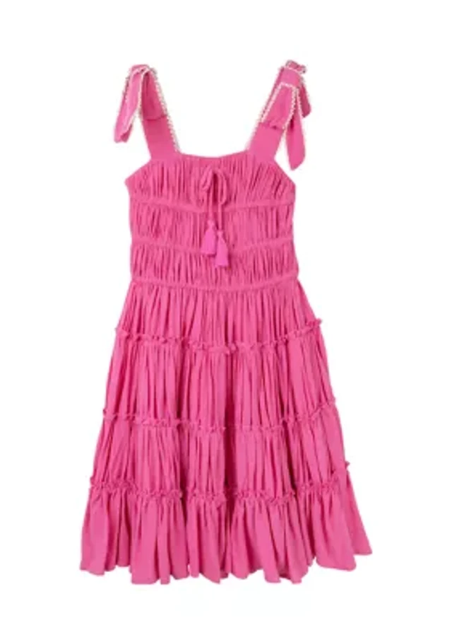 Baby And Toddler Girls Floral Textured Tie Shoulder Dress