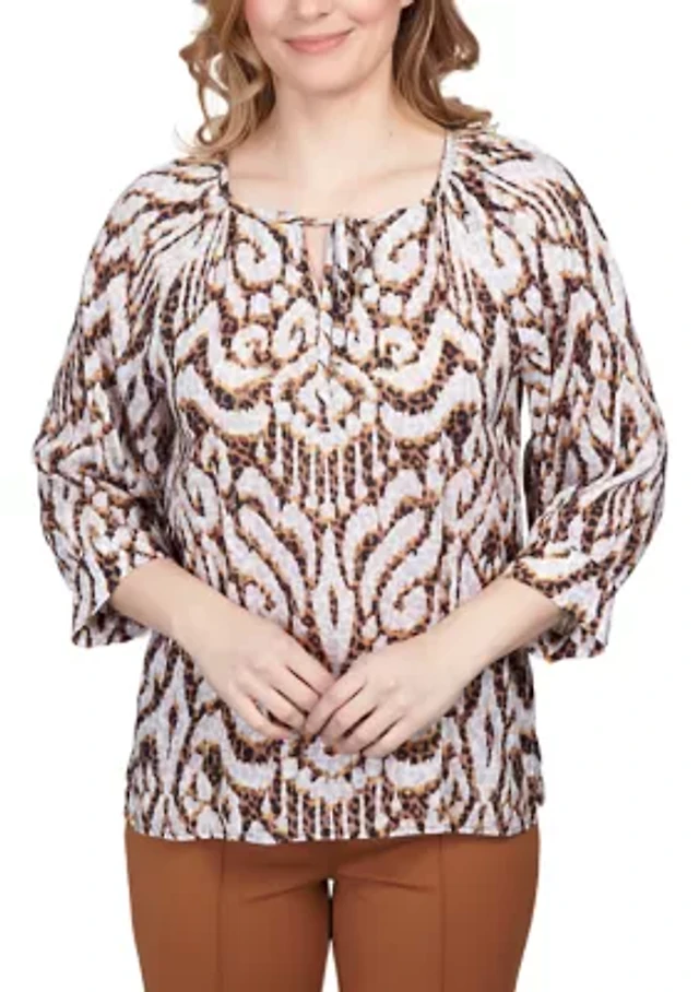 Petite Spot On Keyhole Neck Jaguar Print Top
