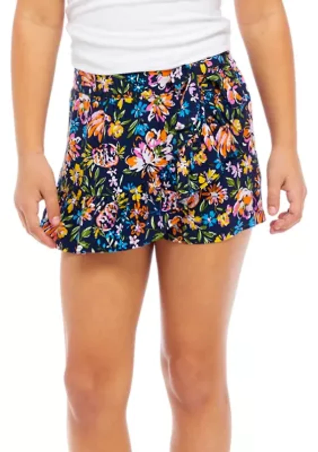 Girls 7-16 Printed Wrap Ruffle Skort