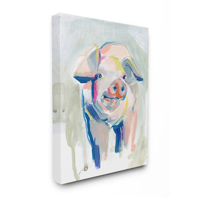Stupell Industries Colorful Pig Farm Animal Painting Canvas Wall Art