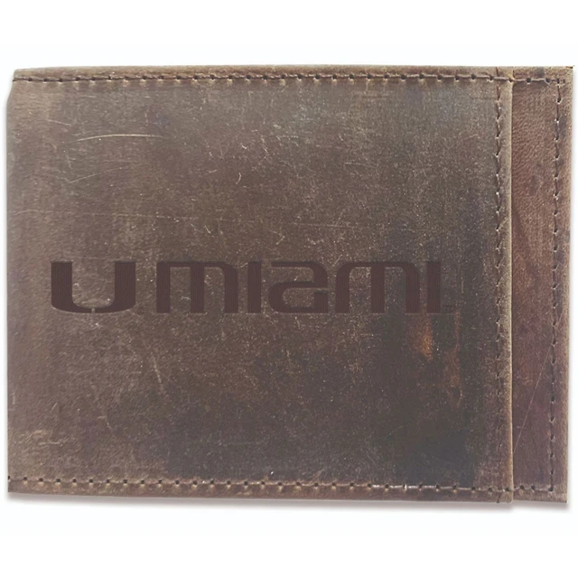 Black Miami Hurricanes Hybrid Leather Front Pocket Bi-Fold Wallet with Money Clip