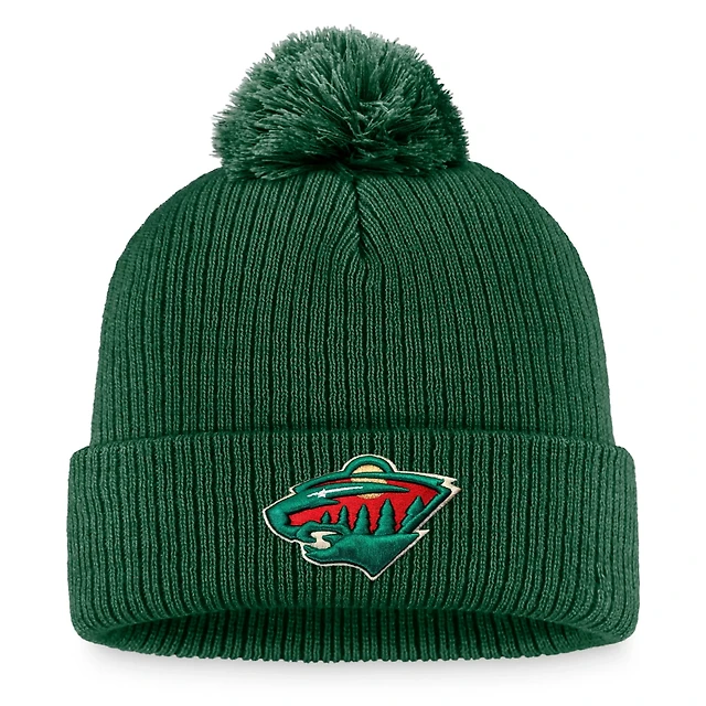 Fanatics Minnesota Wild Core Primary Logo Cuffed Knit Hat with Pom