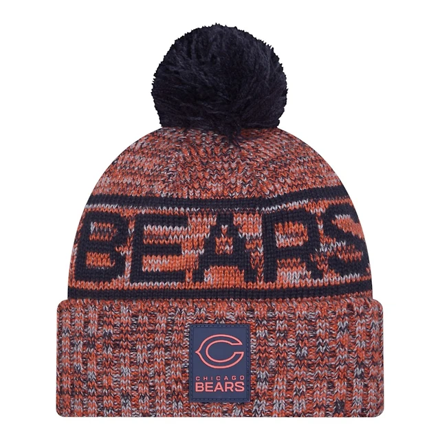 Chicago Bears Navy "C" Logo 2025 Sideline Cold Weather New Era Cuffed Beanie Knit Hat with Pom
