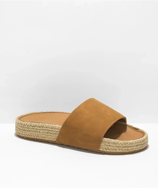 Roxy Slippy Espadrille Tan Slide Sandals