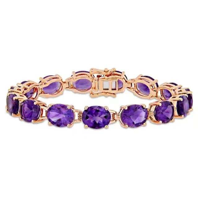 Lab Created Sterling Silver 18K Rose Gold Plated with Ruby Red Heart Cubic Zirconia Charm Bracelet