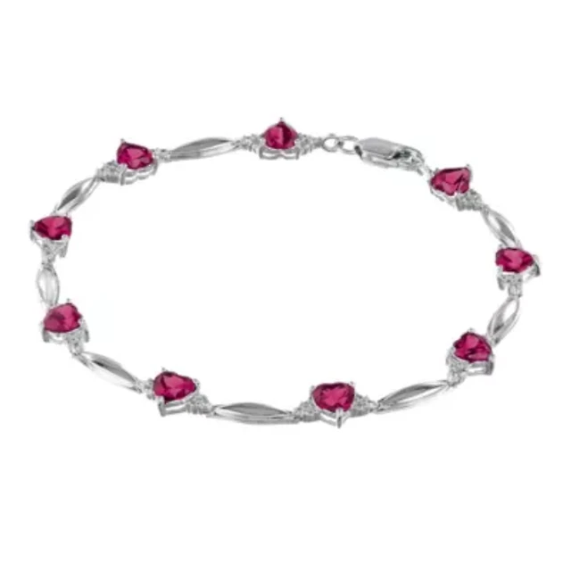 Lab-Created Ruby Heart-Shaped Sterling Silver Bracelet