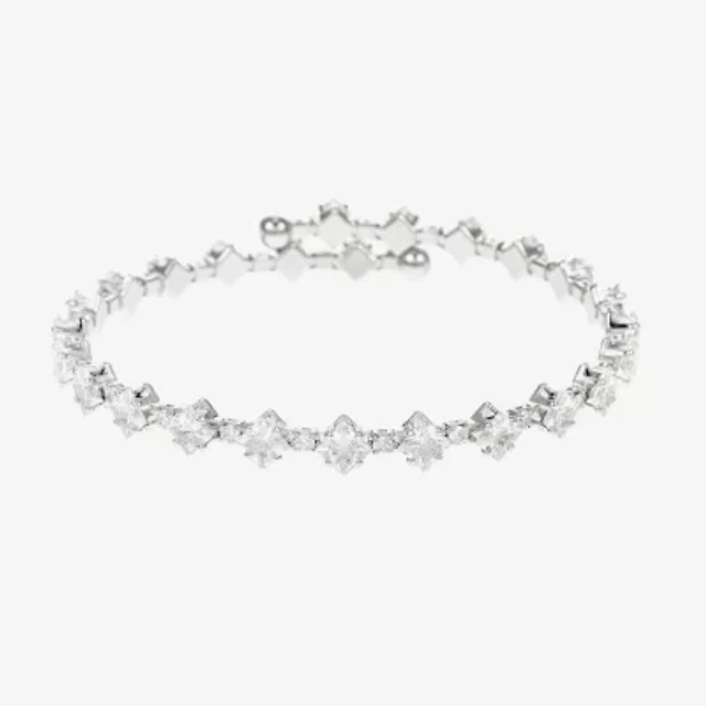 Womens Cubic Zirconia Platinum Over Silver Heart 7.25 Inch Tennis Bracelet