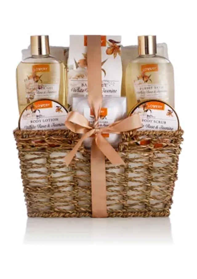Lovery Home Spa Gift Basket - White Rose & Jasmine - Luxury 11 pc Bath & Body gift
