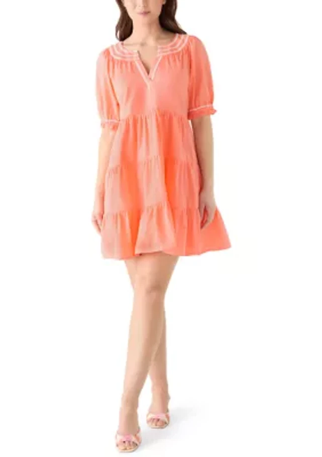 Plus Short Sleeve Split Neck Tiered Knit Dress