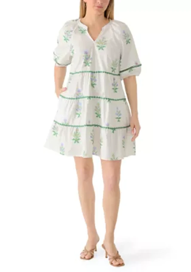 Plus Short Sleeve Split Neck Floral Print A-Line Dress