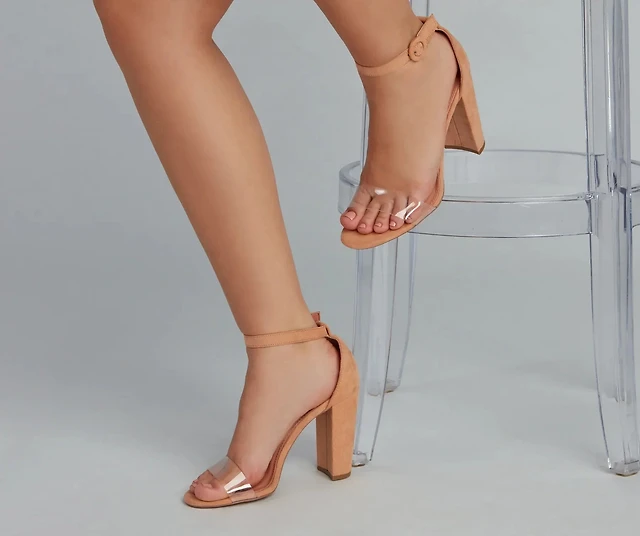 Basic Strap Faux Suede Block Heels