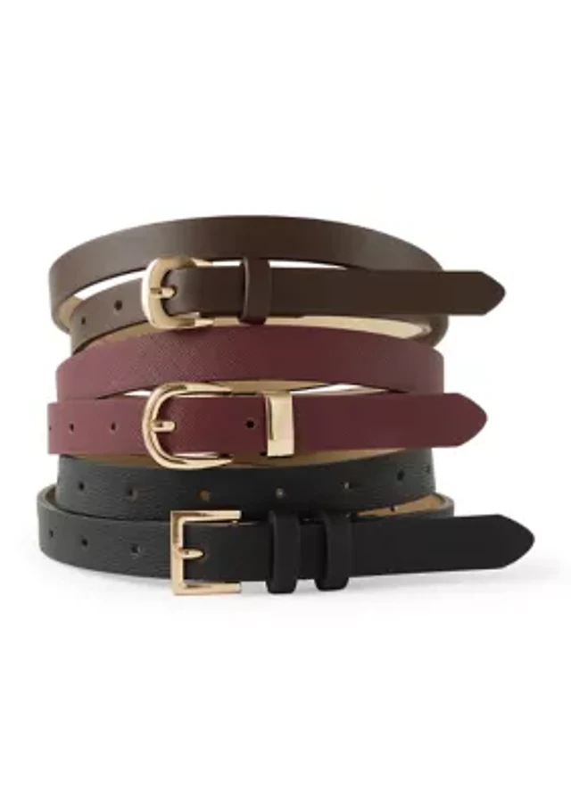 Dillard's 2-For-1 Textured Faux Suede Round & Rectangle Buckle Belt Set