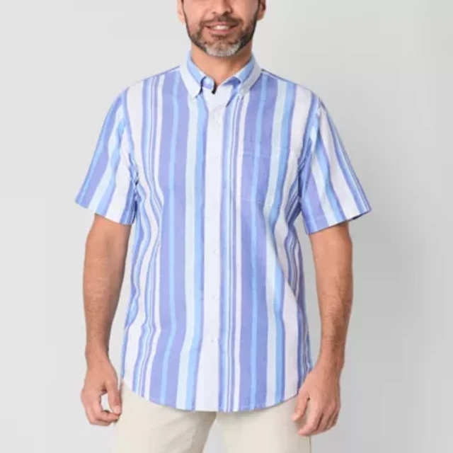 St. John's Bay Textured No Tuck Mens Short Sleeve Classic Fit Button-Down Shirt