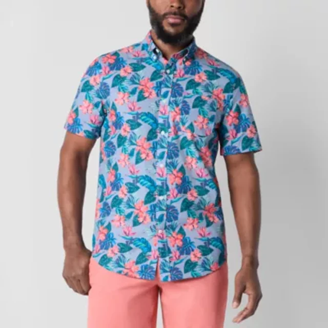 St. John's Bay Performance Mens Short Sleeve Slim Fit Stretch Fabric Button-Down Shirt