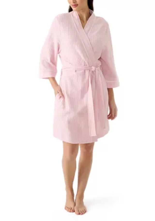 Liz Claiborne Womens Waffle 3/4 Sleeve Knee Length Robe