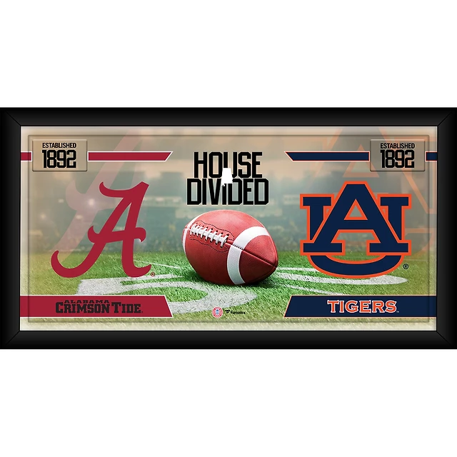 Alabama Crimson Tide vs. Auburn Tigers Framed 10" x 20" House Divided Football Collage