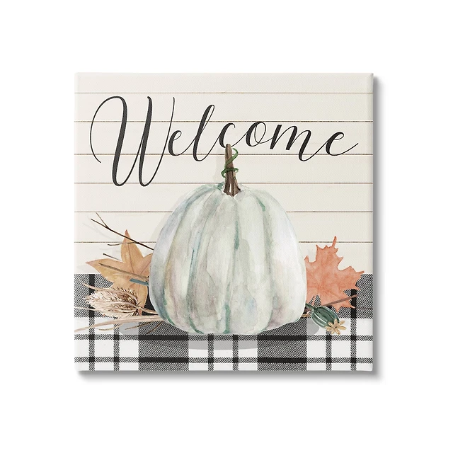 Stupell Industries Welcome Plaid Pumpkin Sign Canvas Wall Art