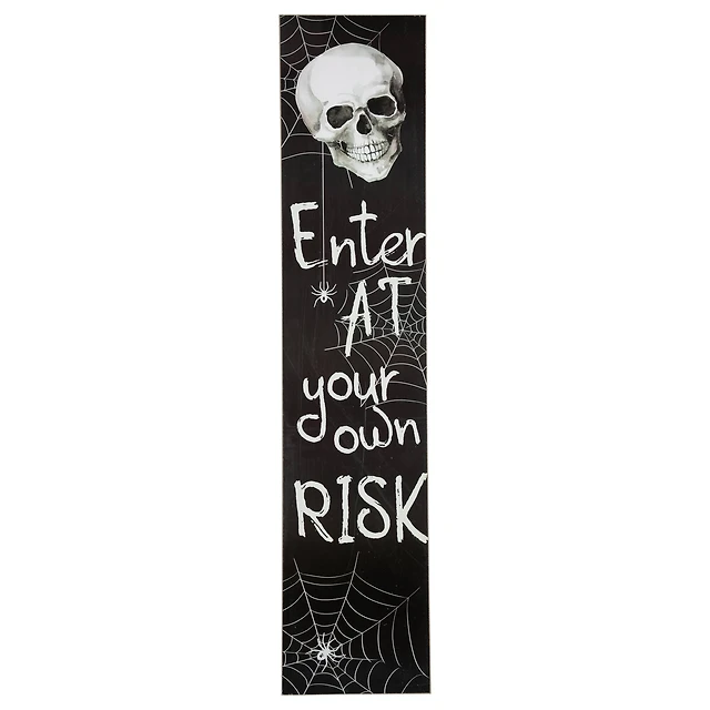 36" Black & White Enter at Your Own Risk Wood Halloween Wall Sign