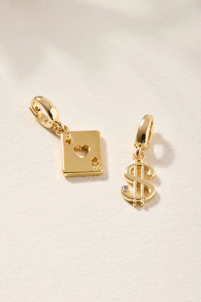 Playing Card and Money Sign Charm Set Gold