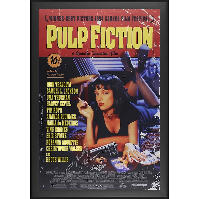 Samuel L. Jackson, John Travolta & Uma Thurman Pulp Fiction Autographed Framed 24" x 36" Movie Poster