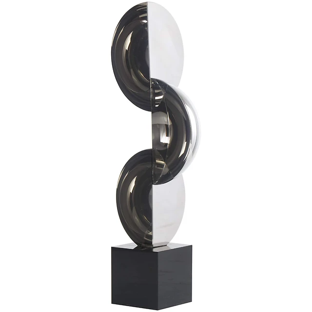 16.25" Dark Gray & Silver Crystal Glass Geometric Quartered Stacked Orbs Sculpture Décor