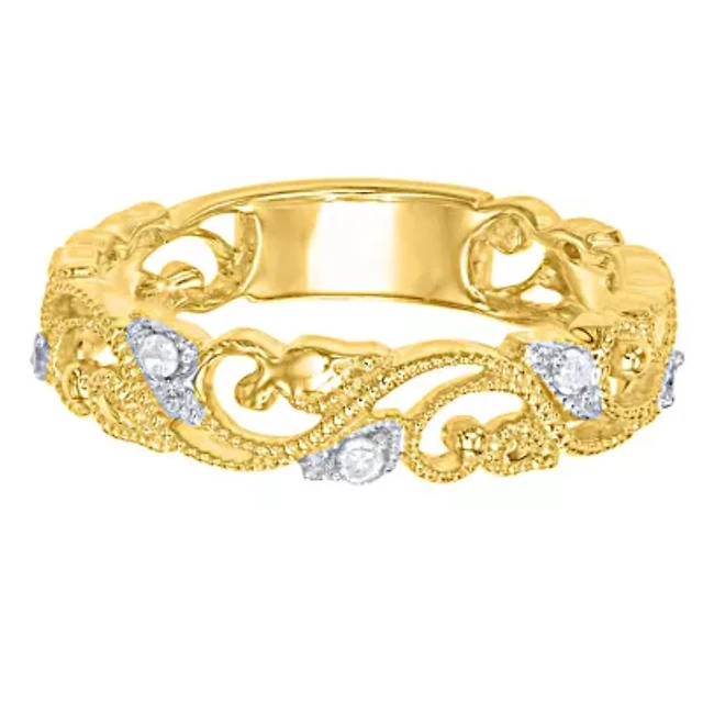 Promise My Love Womens 1/8 CT. T.W. Natural White Diamond 10K Gold Sterling Silver Round Side Stone Halo Ring