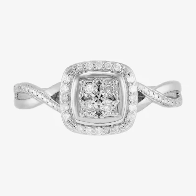 Womens 1/6 CT. T.W. Natural White Diamond Sterling Silver Cushion Engagement Ring