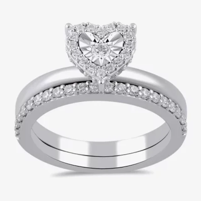 Surrounded by Love (H / I1-I2) Womens 1/2 CT. T.W. Lab Grown White Diamond Sterling Silver Heart Halo Bridal Set