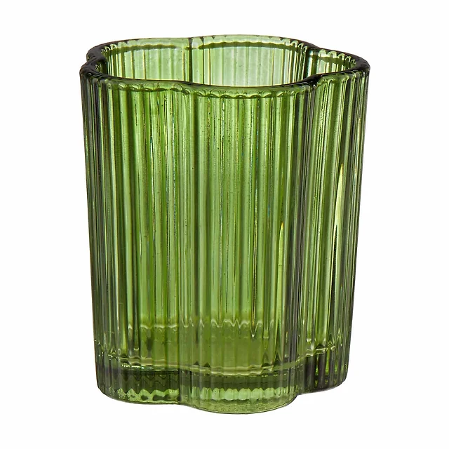 Ribbed Glass Votive Holder, Green, 3.3 in