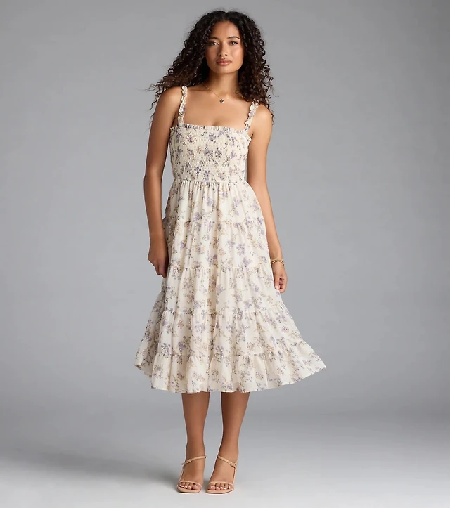 Effortless Love Ruffled Floral Chiffon Midi Dress
