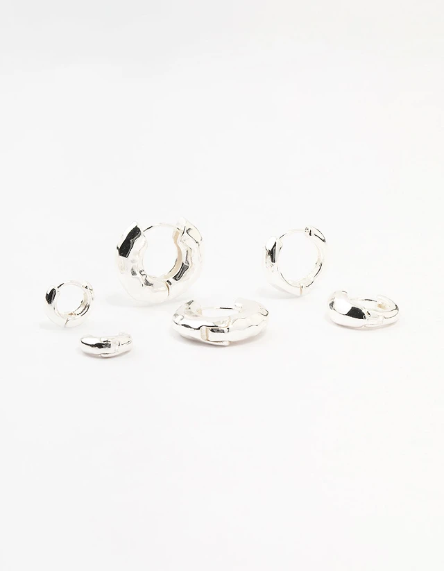 Silver Plated Brass Hammered Graduating Hoop Earrings 3-Pack