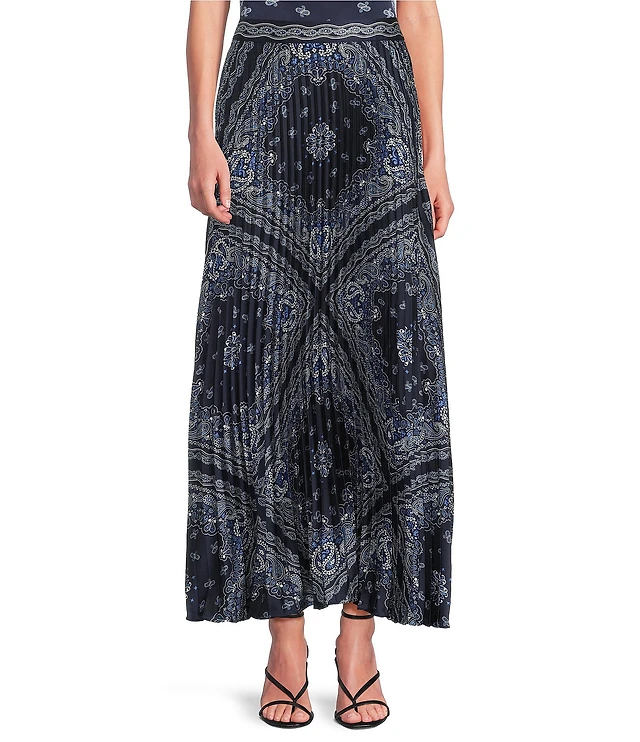 Skies Are Blue Bandana Print Pleated Coordinating Midi Skirt