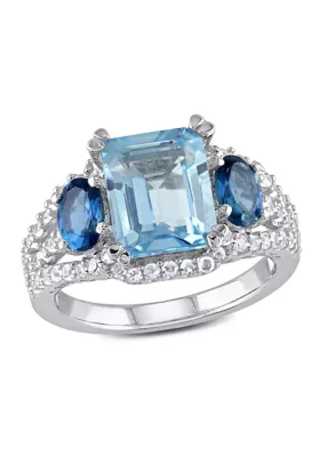 Baguette Sky-Blue Topaz Peridot Citrine Rose de France Swiss-Blue White Engagement Ring Yellow Plated Sterling Silver