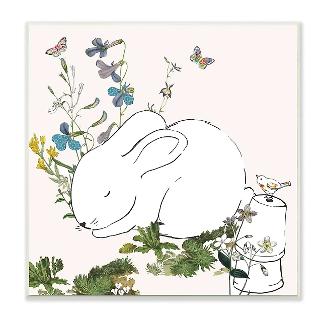 Stupell Industries Sleeping Bunny in Butterfly Garden Wall Plaque