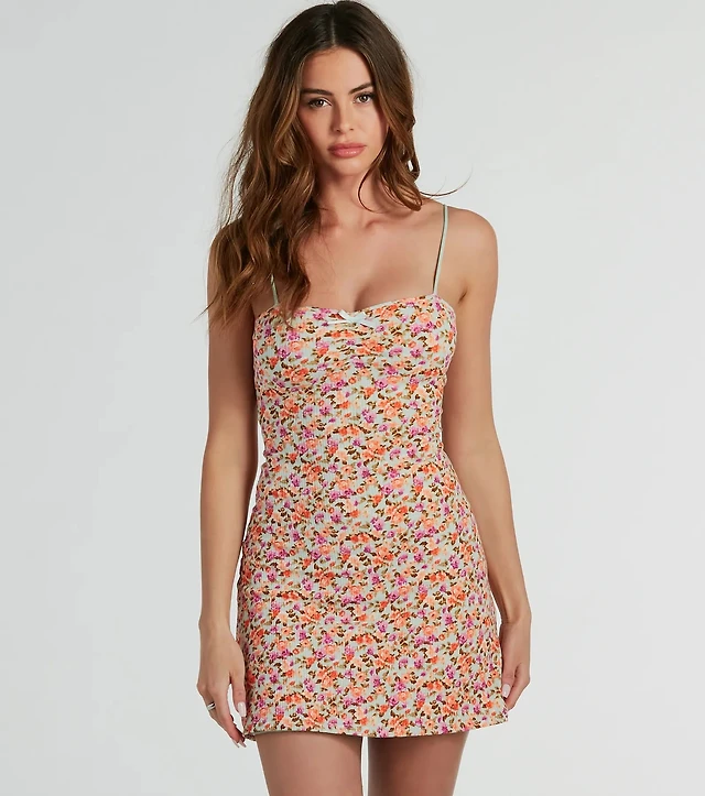 Flirty Romance Corset Lace-Up Floral A-Line Mini Dress