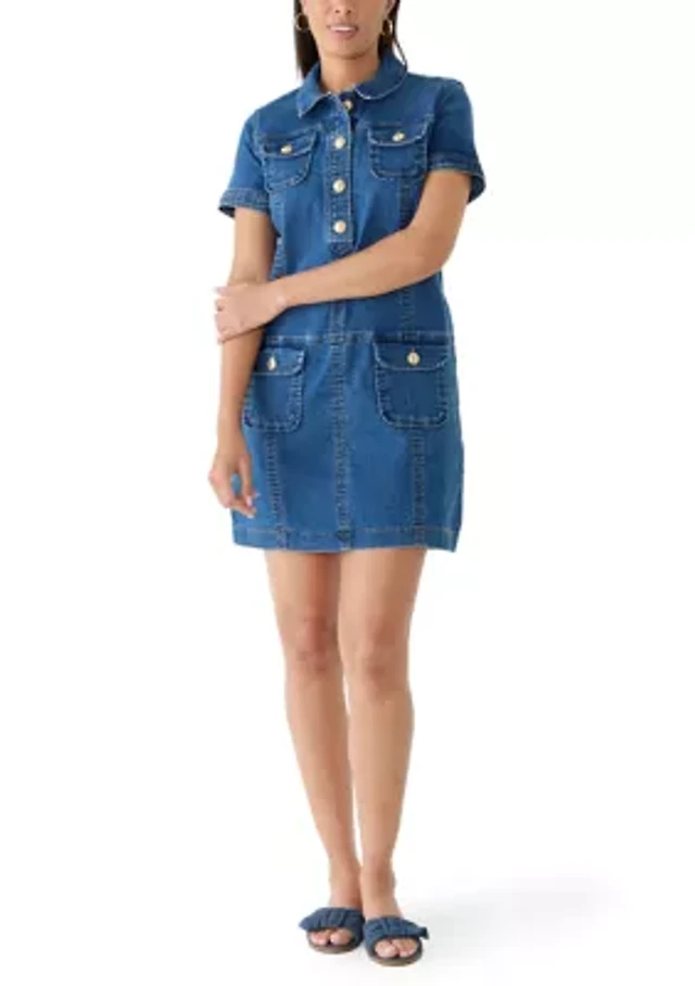 Eliza J Sequin Collared Long Sleeve A-Line Shirt Dress