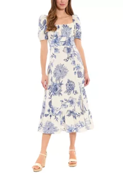 Girls 7-16 Printed Puff Sleeve Dress and Denim Vest Set