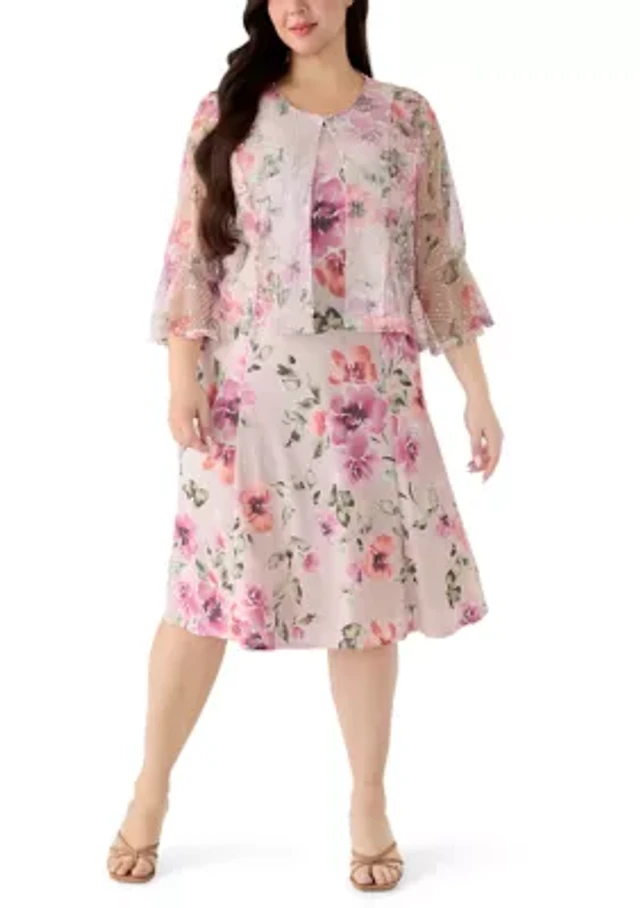 R & M Richards 3/4 Sleeve Jacket Dress with Removable Necklace