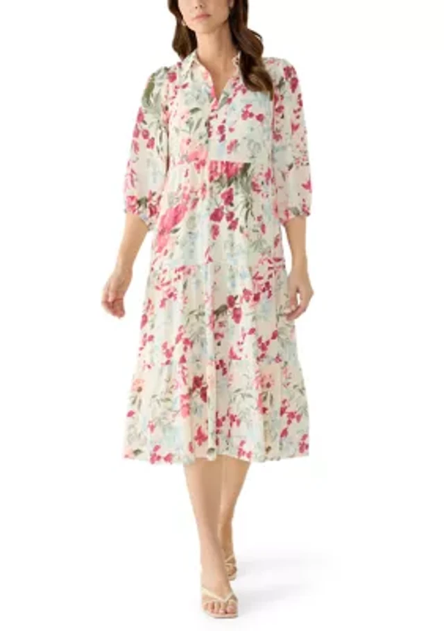 Women's Puff Sleeve Smocked Paisley Midi Dress