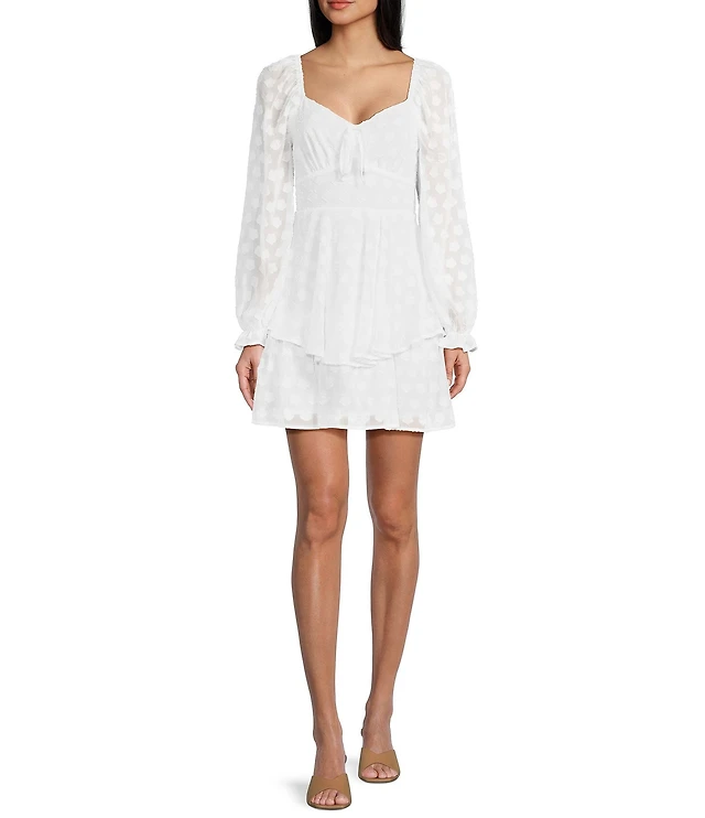 Women's Tiered Flare Sweetheart Neck Puff Sleeve Dress