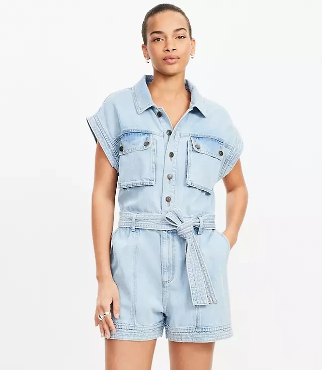 Sadie & Sage Short Sleeve Stretch Denim Romper