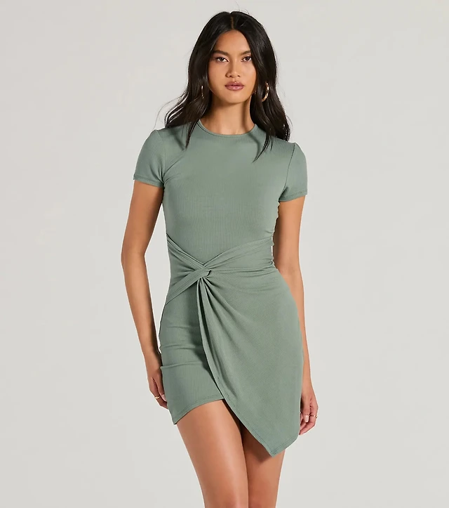 Cutest Spirit Short Sleeve Knot Tie Mini Dress