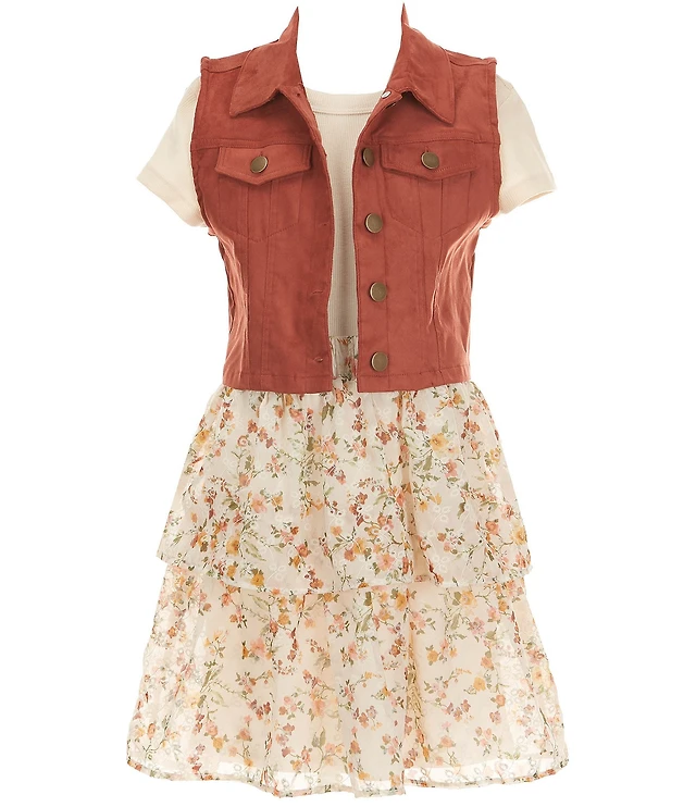 I.N. Girl Big Girls Suede Vest & Short Sleeve Double Tier Dress Set